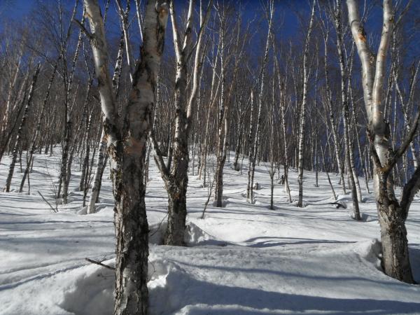 平日でしたが、10名ほどの山スキーヤーが入山していました。南峰を攻めたのは私ともう1パーティーで、他の方々は北峰を目指して大斜面を登ってました。