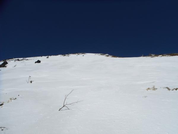 右岸尾根に取り付いてから傾斜が落ち着くまではツボ足登行、そこから先は南峰頂上までシールで上がれます。頂上付近は凍っているので不安な方はクトーまたはピッケル&アイゼンがあると安心です。