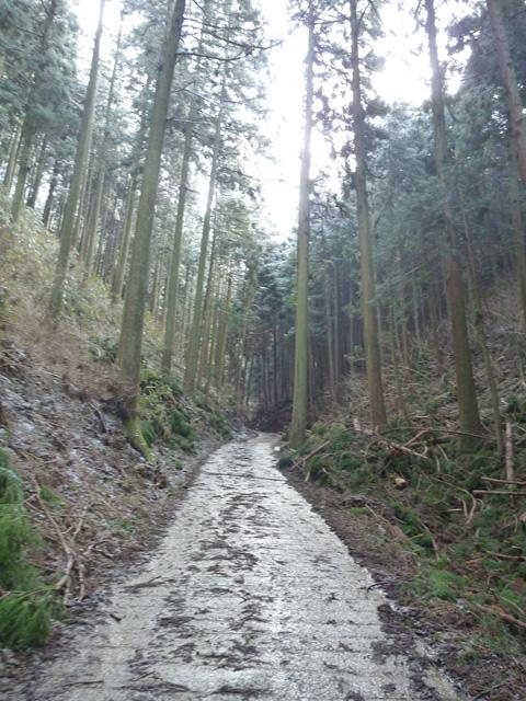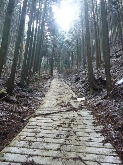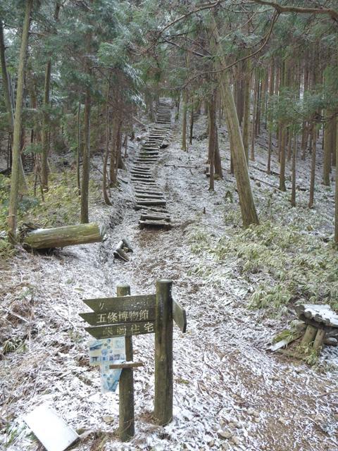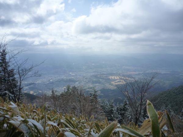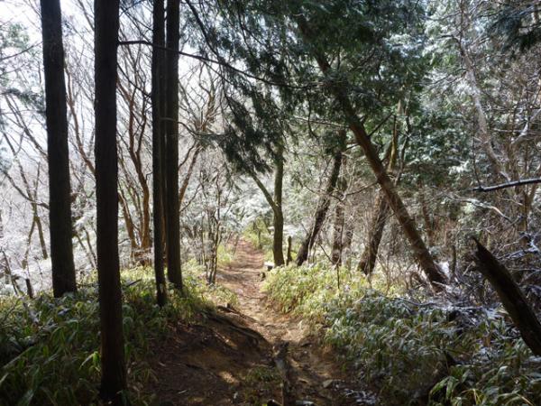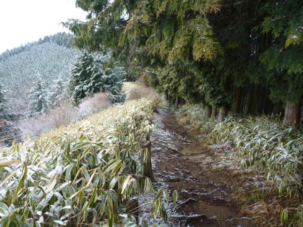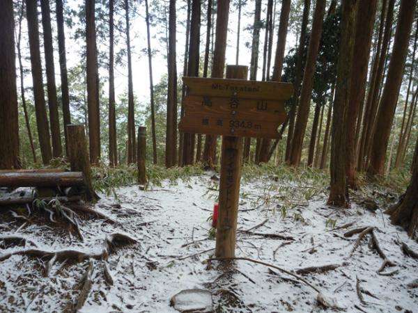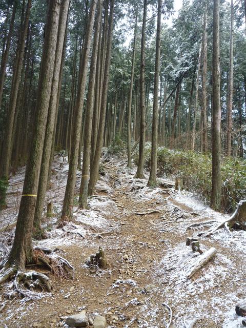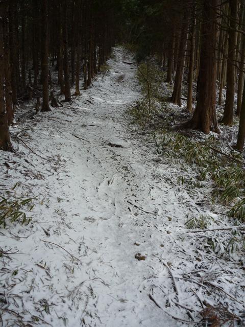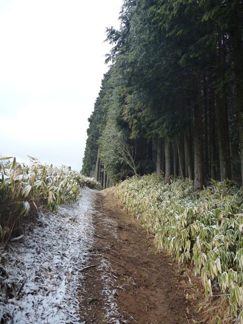 理由は前日の寒気のせいで頂上付近は1〜3センチくらいの雪が積もっていました。