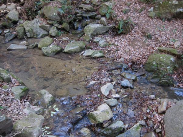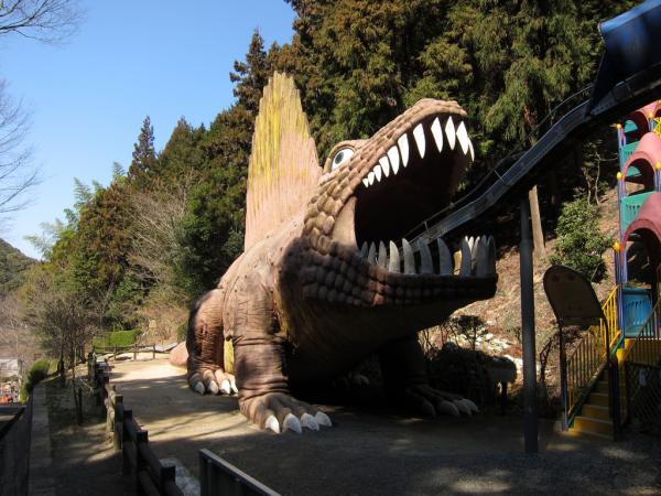 公園内は真ん中を沢を歩き、恐竜の前を通って真っ直ぐ歩くと登山口です。