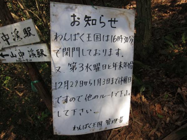 また、わんぱく王国への下山は、わんぱく王国の営業時間内でなければ