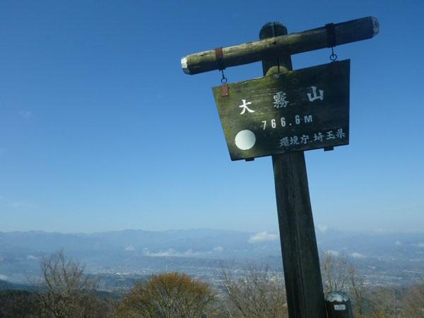 - 橋場バス停→(45分)→粥新田峠→(45分)→▲大霧山山頂→(30分)旧定峰峠→(45分)→経塚バス停→(徒歩60分)→橋場バス停
