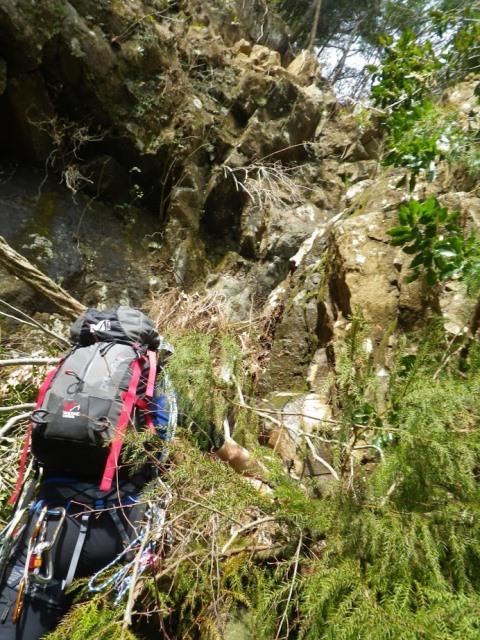 最後のチムニー7m滝は遠目から登れないと判断し、右岸尾根から詰めることにしたのですが