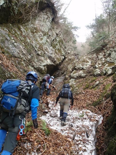 上部は、雪が沢を埋め雪渓状になっていた。