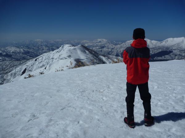 この日は天候に恵まれ、頂上に続く尾根を目で追って行けるほど見通しが良かったので、迷わずに山頂に着くことができました。尾根上や頂上から北アルプスや乗鞍、御岳もよく見え、すぐ北側には白山が堂々と聳えていました。とても気持ちの良い展望でした。