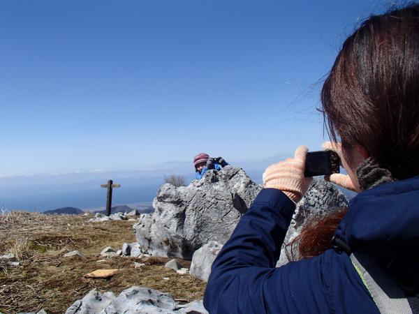 それでも天気は晴れていてお猿石からは、遠くの山々まできれいに見渡すことができ、琵琶湖の水面がキラキラ輝き美しかったです。大満足!