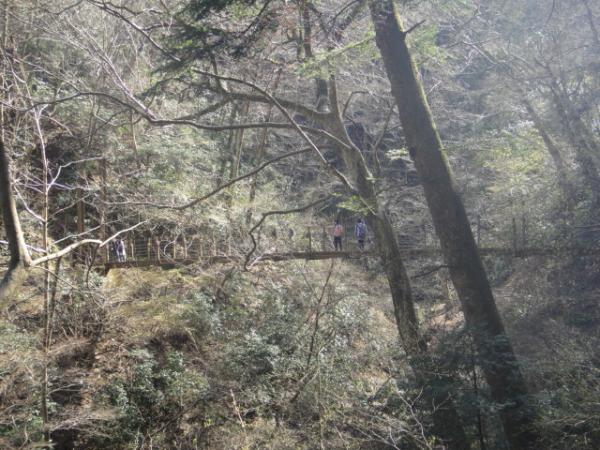 - 京王線高尾山口駅→(20分)→見晴らし台→(25分)→高尾山山頂広場→(15分)→吊り橋→(10分)→蛇滝分岐→(15分)→蛇滝→(10分)→高尾梅郷→(30分)→JR高尾駅