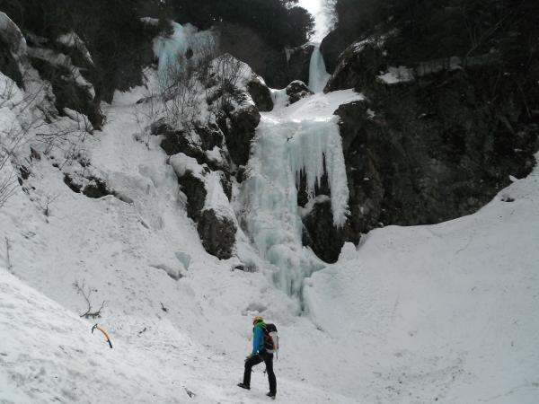 中千丈沢アイスエリアに行ってきました。どれも技術・意気込みがないと登れないルートでした。登ったルートは 鷹ノ爪 一角獣(1pのみ)ジョーズ左ルート いずれもリード&フォローでした。
