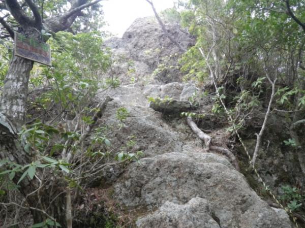 - 登山道は全体的に道幅が狭く、やや傾斜がかかっているような部分が多いので、危険度は低いものの注意して歩いて下さい。山頂手前辺りは少々急な箇所も出てきます(最後はロープが有ります)。短いコースですが最後まで気を抜かずに歩きたいものです。目印もポイント、ポイントにありますので、道迷いの心配は少ないかと思います。
