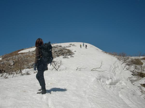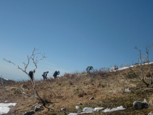 快晴で稜線にでると近くに御池岳・伊吹山が見え、遠くには琵琶湖の西側の山々や、御嶽・白山を眺めることができて十分楽しめました。