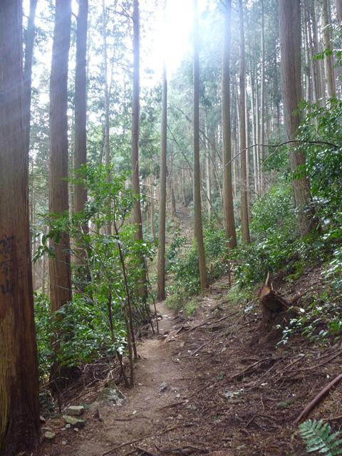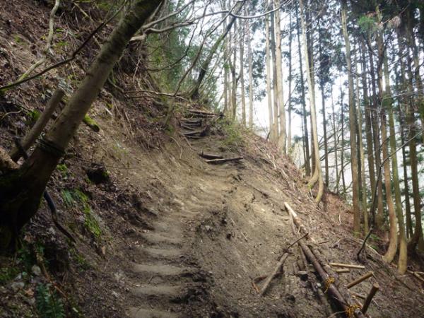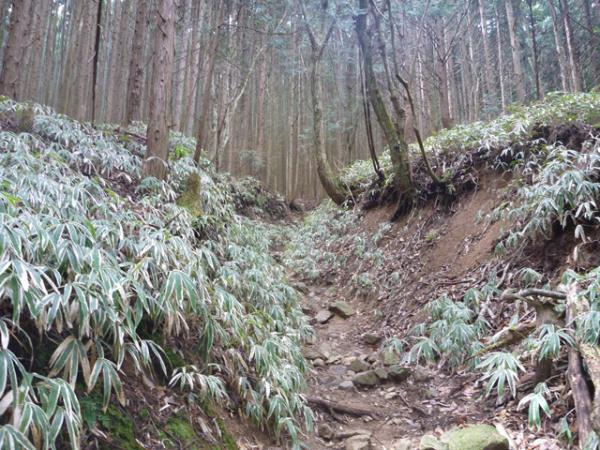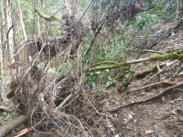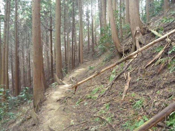 急な坂や木が倒れていたり道なき道を行くという感じでした。