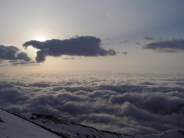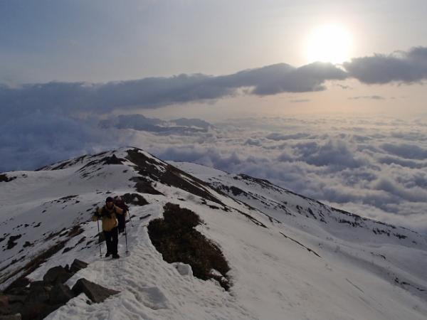 朝のうちは美しい日の出も拝め上々のお天気でしたが、丸山から先は濃いガスの中で方向がわかり辛くなる場面もありました。