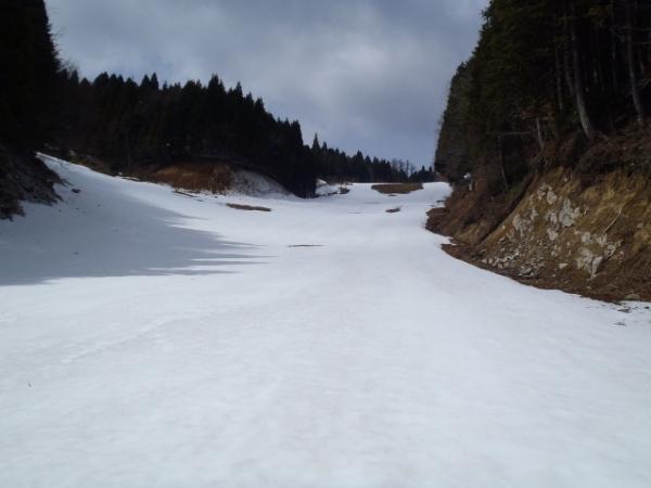 スキー場~ダルガ峰までの林道は15~20㎝の残雪。