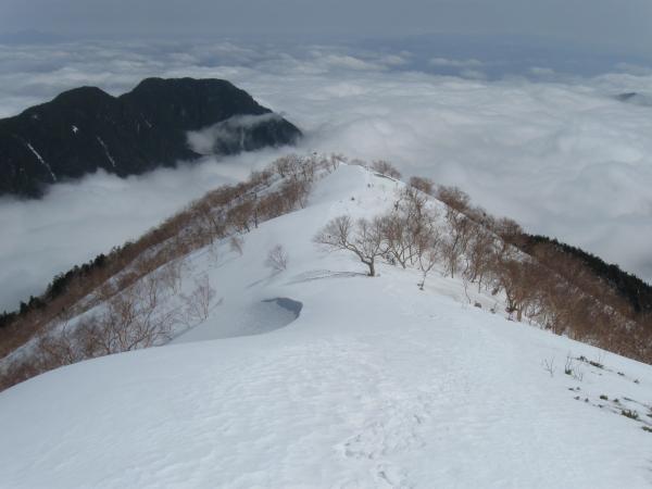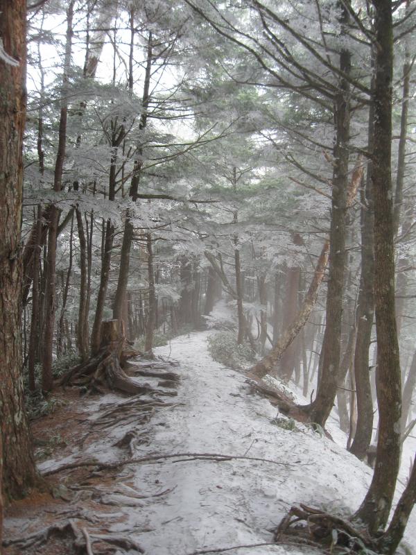 それでも標高が上がるにつれて次第に雪は締まって歩き易くなり、かかっていた霧も晴れていきました。