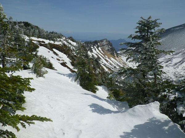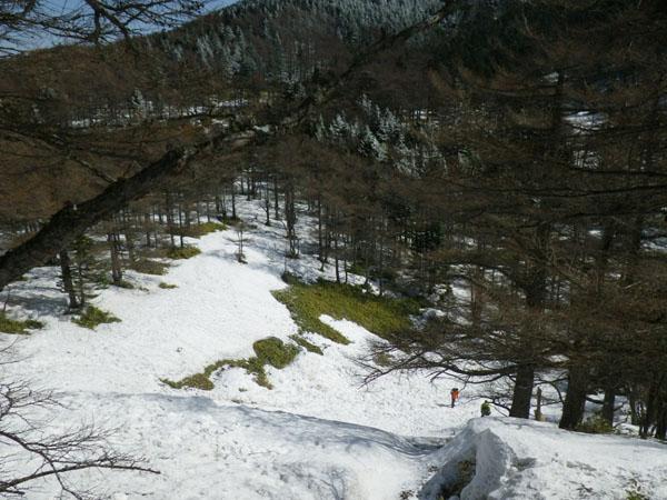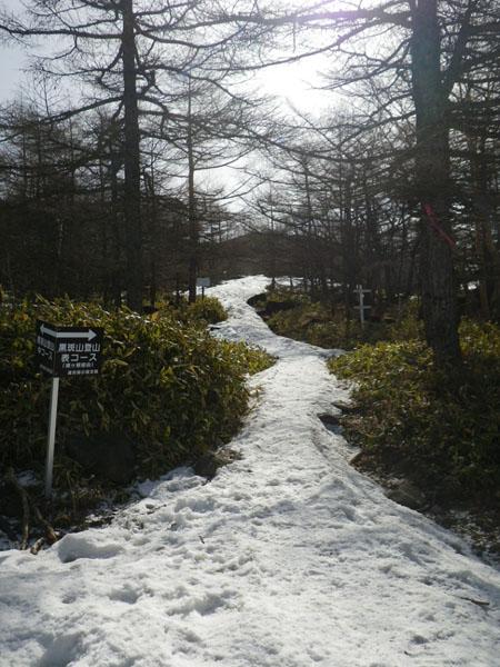 ■黒斑山~蛇骨岳までの稜線は夏道上の雪が緩んでいるので、歩行時特に注意。