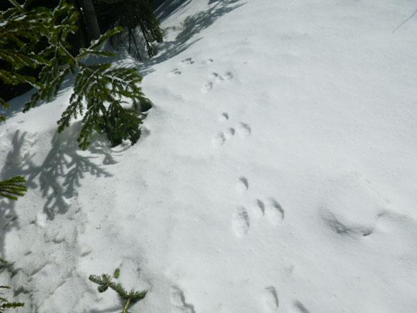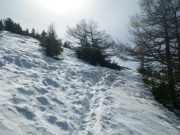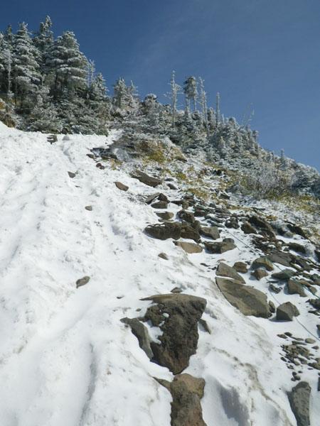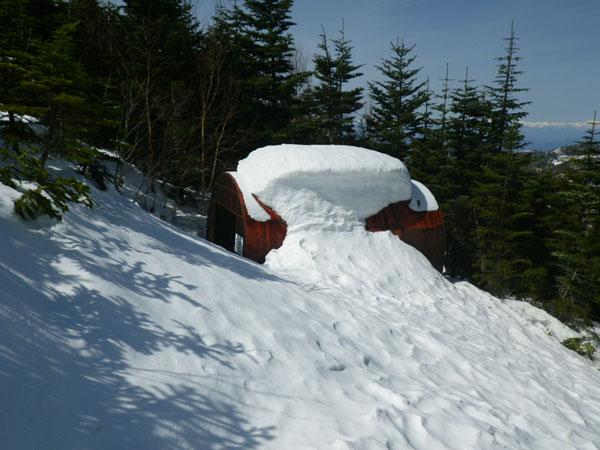 - ■ほぼすべてのルート上に雪が残っています(6爪アイゼン必須)。固くしまっていますが、日当たりの良い部分では大分雪が緩んでいます。樹の根元などは歩行時注意。