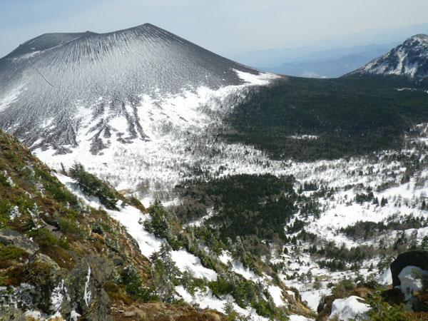 トーミの頭からダイナミックな浅間と湯の平の広がりを眺めながら歩きました。ちょっと他では感じられないスケール感で、本当に何度きても飽きない。