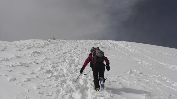 行動中は、天候に恵まれ風も比較的弱かったので、快適な山行でした。 天狗岳往復と根石岳往復では、風の強さが全く違いました、個人的には不安はありませんでしたが、同行者は戸惑いと不安をのぞかせていました。 夕方からは雪模様で風雪が激しく、翌日の行動計画を変更しました。 岩と雪ミックスでのアイゼンワークを体験をするのに良いエリアです。