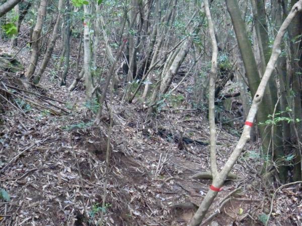 登山道は、よく見れば踏み分けがありますが、かなり分かりにくい為、赤テープを頼りに歩くことをお勧めします。