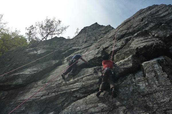 最初はロープの扱い方、道具の使い方、確保の仕方など、しっかり教わってから壁に挑みます。