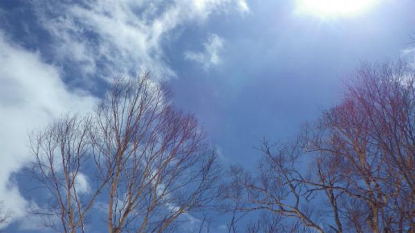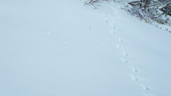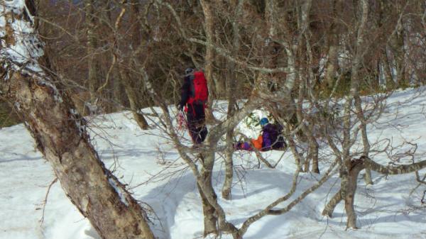 アイゼンでツボ足で歩くのと全然違うな~と歩いていたら、板が木の枝に引っかかる・・・。スキーにまだ慣れていない私は引っかかる枝を外したり、カリカリの雪にビビりながらゆっくり登ります。