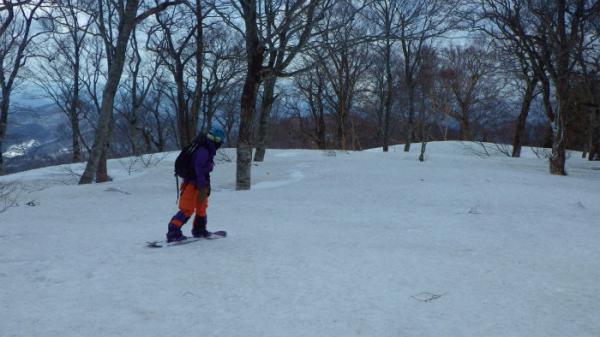 下りは急な部分は歩きで降り、なだらかな斜面は滑る事にしました。