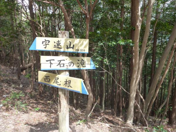 下石ノ滝道分岐-(50分)-宇連山山頂-(50分)-下石ノ滝道分岐-(35分)-亀石ノ滝分岐-(20分)-亀石ノ滝-(50分)-県民の森駐車場