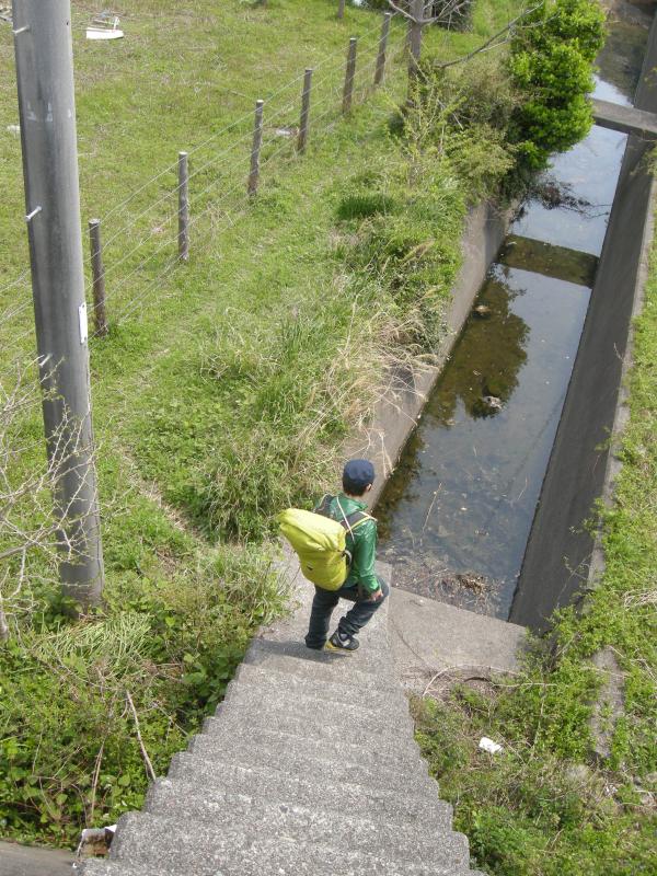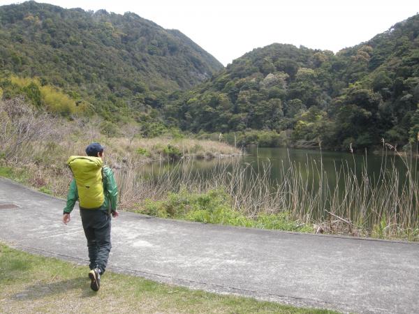 いったん恵比寿浜キャンプ場方向に戻り、防波堤の階段を上って防波堤の内側に。ため池の横を通り過ぎて、「阿瀬比ノ鼻休憩所 0.8km」の標識がある所から林道を登っていきます。