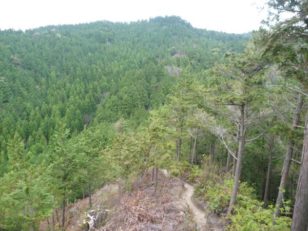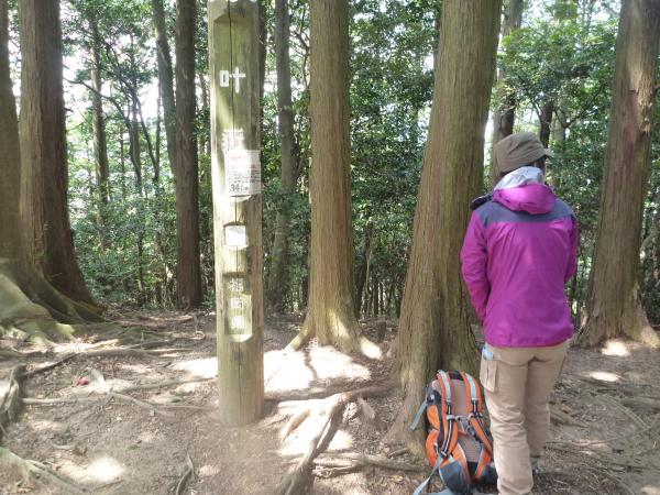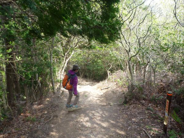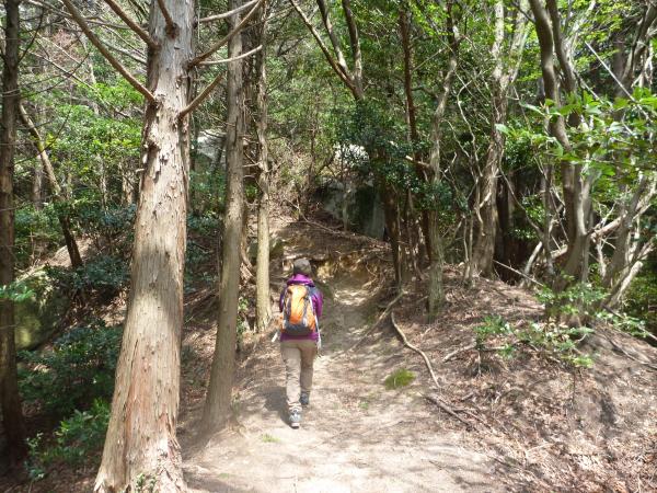 「羽根戸」バス停から看板通りに進み飯盛神社を過ぎ飯盛神社中宮までは車道を歩き、中宮から登山道になった。この日は曇りで最初のうちは少し寒かった。分岐の看板を過ぎた辺りから登りがキツくなり、15分程登ると飯盛山(382m)山頂である。小休止。山頂はあまり景色がなく30分で着いてしまったこともあり、物足りなかったので「叶岳」に行くことにした。