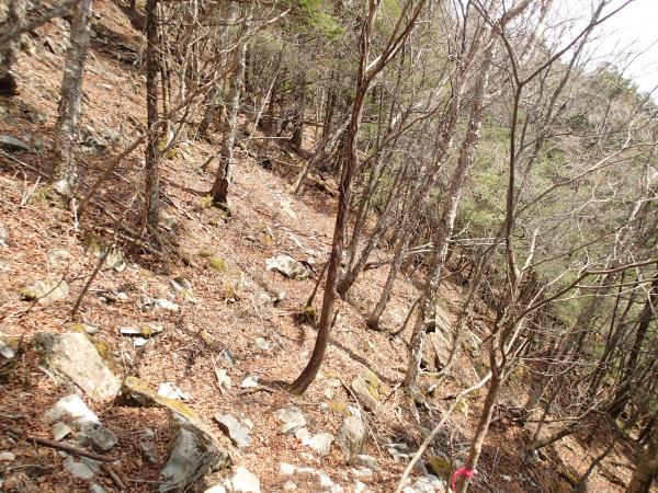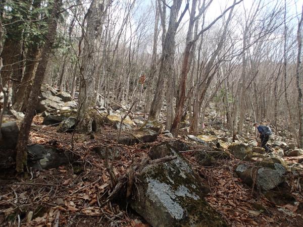 道満尾根は落葉が多く滑りやすく、下に隠れている木や岩が見えないので注意が必要です。