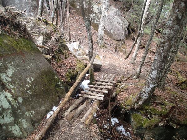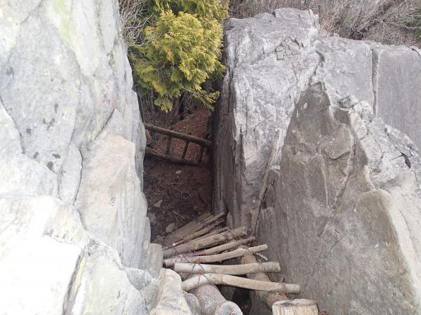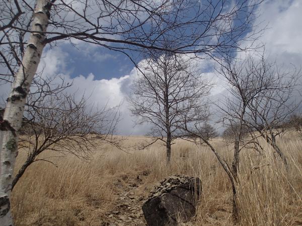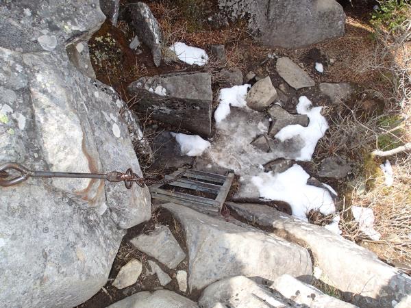 - 山頂の裏、下山道側に1mも続かない雪が残っているだけで、あとは積雪なしです。軽アイゼンも必要ありませんでした。