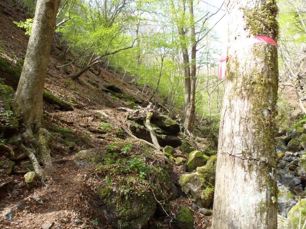 小屋から上は部分的に雪が残っていましたが、あまりにわずかで軽アイゼンはもう不要な時期に入っていると感じました。