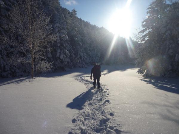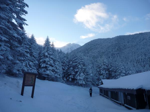 - 赤岳鉱泉までの北沢コース・行者小屋までの南沢コースは、十分な積雪がありました。凍っている箇所はほとんどありませんでした。文三朗道は、かなり傾斜がきついのでアイゼン・ピッケルは必須です。