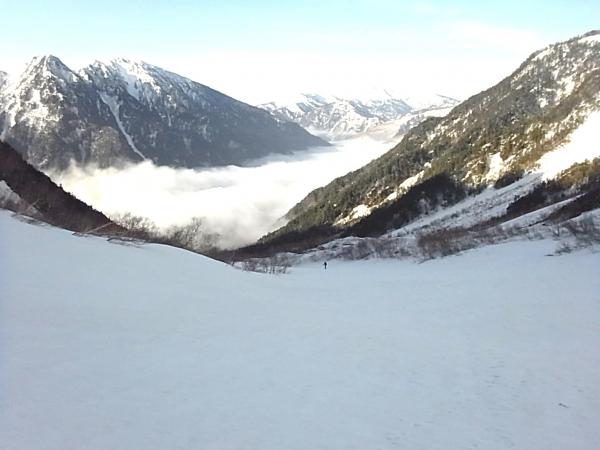 奥穂高岳から穂高岳山荘への下りはFIXロープも埋没しており、滑落するとまず止まらないので、慎重に下りました。