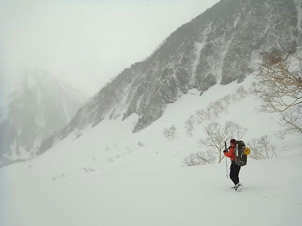 翌日は前穂高岳北尾根を継続登攀する予定でしたが、朝から吹雪。