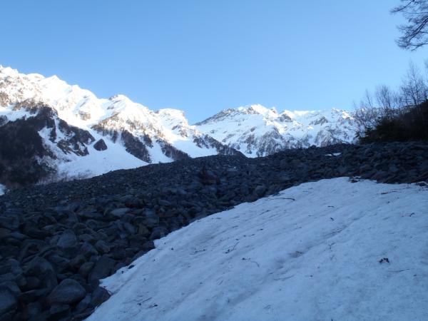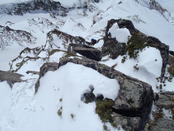 南陵自体はトレースがなく取りつきまでの雪崩に注意。