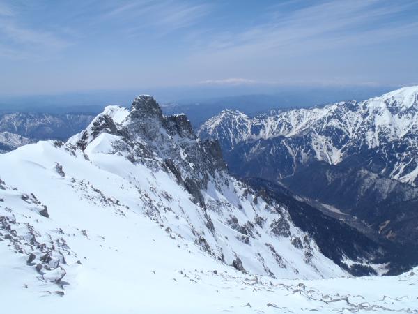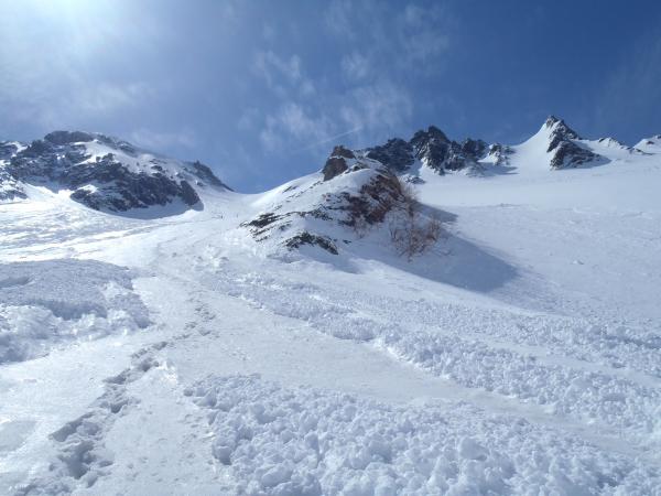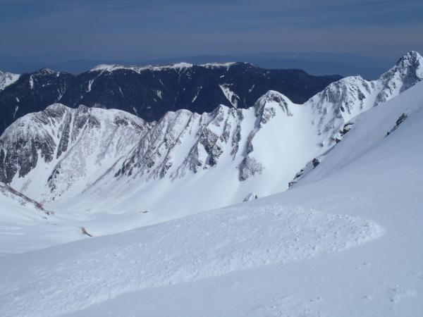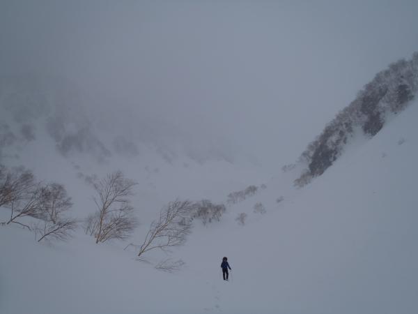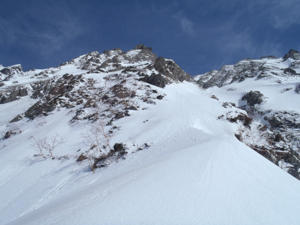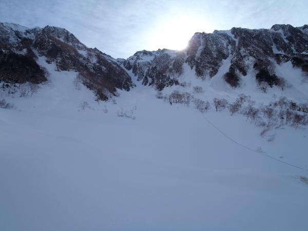 沢筋の雪崩に注意。