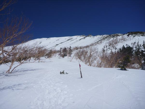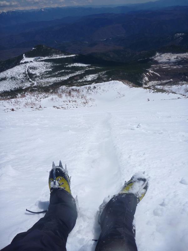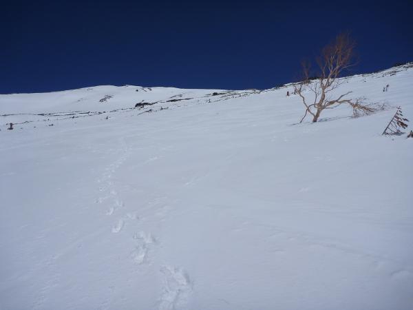 上部に差し掛かると雪が固くなってくるのでそれなりの靴でないと辛いと思います。
