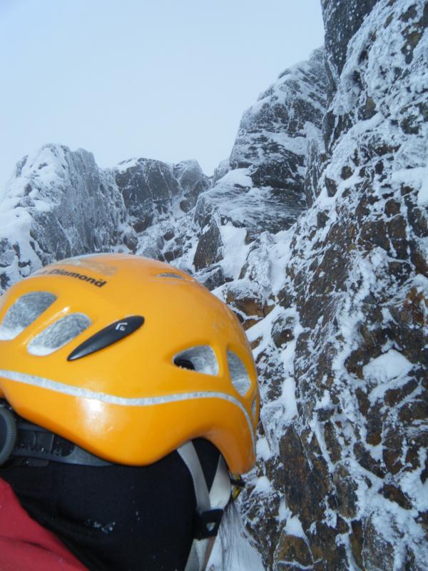 上部の岩場の核心部分は、ペツルのボルトが打ってあるので、