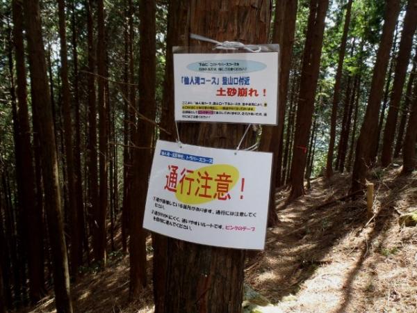 仙人滝ルートは土砂崩れがあるとの事です。 下りの仙人滝コースは特に注意が必要。