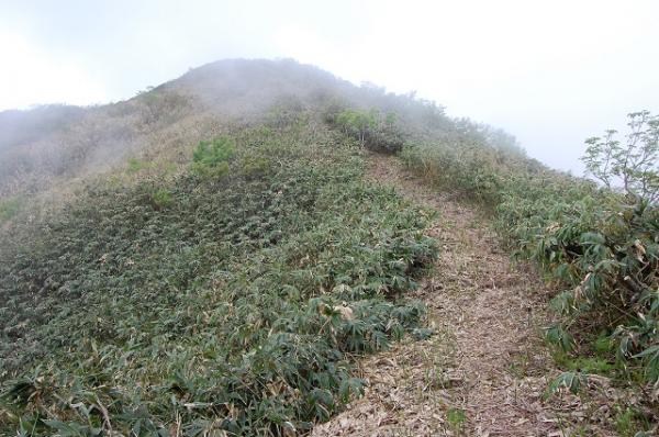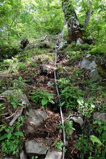登山道もまだまだ若い感じで、先輩登山道に比べると、障害物が多く、歩きづらかったです。