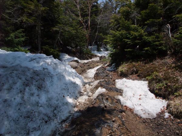 ○雪が融けて土がドロドロになっている箇所がいくつかありました。スパッツは四合目あたりで付けるといいと思います。