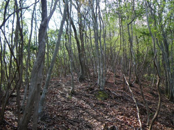 ②猪村からのコースは標識があまりなく、林道終点から尾根へ行く標識を見落としがちだが、尾根の末端を進む