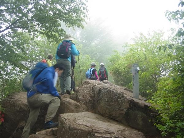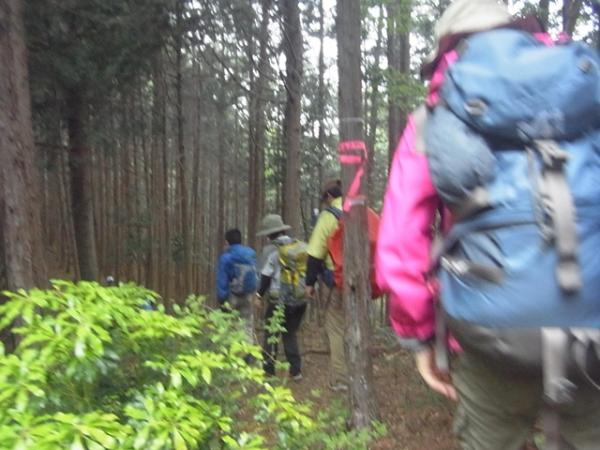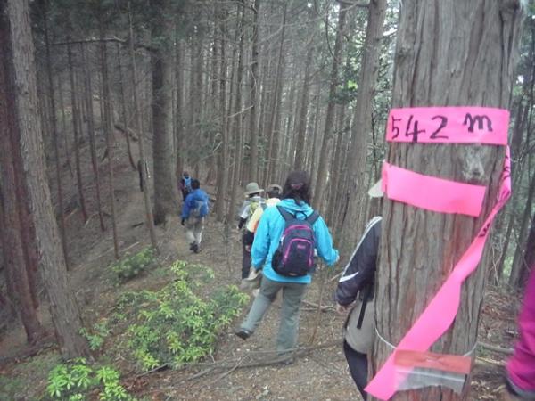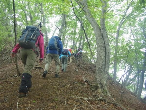 - 東尾根:踏み跡明瞭。道標なしリボンあり。一部滑りやすいところあり。