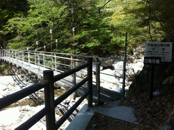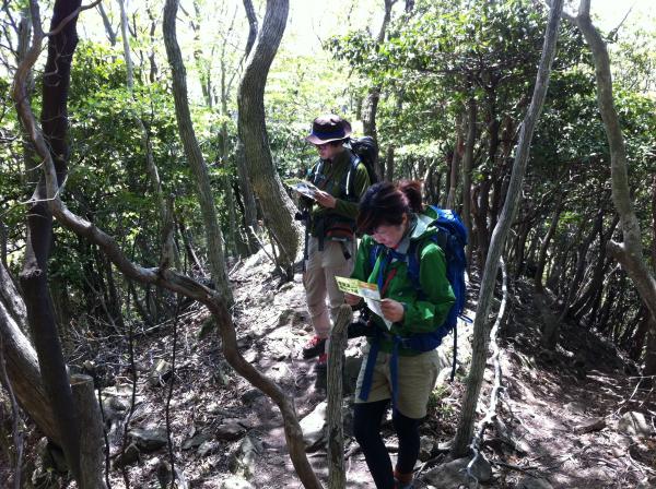 - 宇賀渓キャンプ場(20分)金山尾根登山口(120分)遠足尾根分岐(30分)竜ヶ岳頂上(30分)遠足尾根分岐(140分)宇賀渓キャンプ場