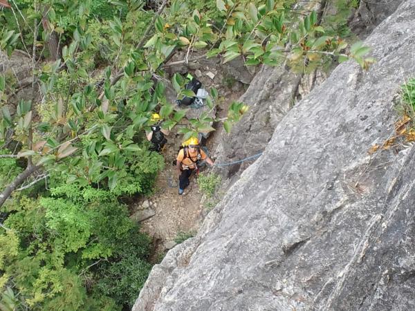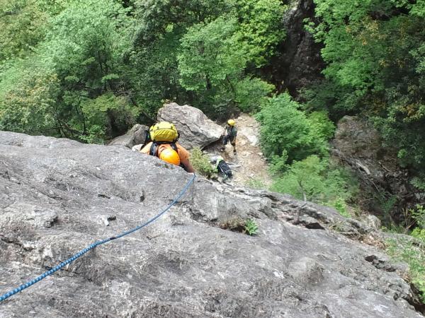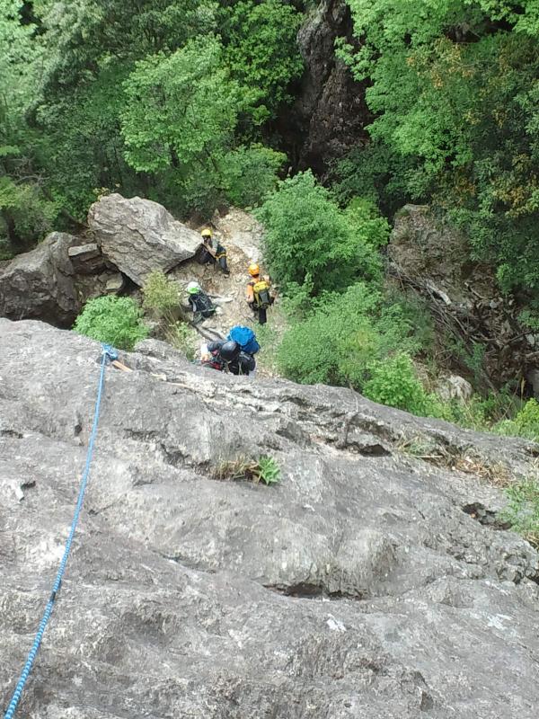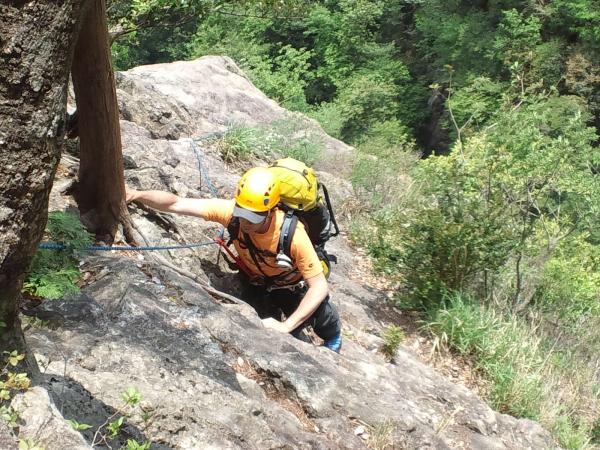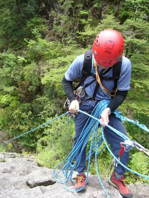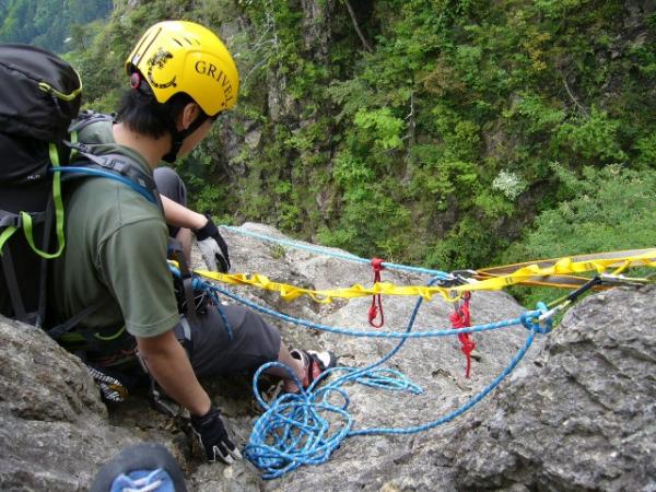 今回は4人でのクライミングで、シングルロープ使用の為、
