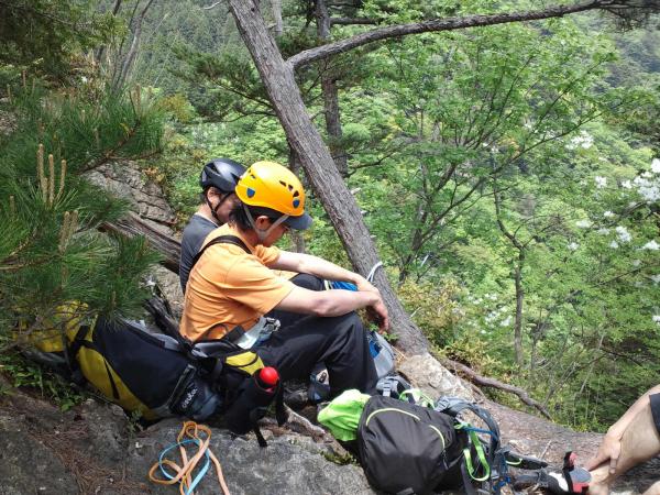 取り付きまでがなかなかパンチの利いた登りで、取り付き部で休憩