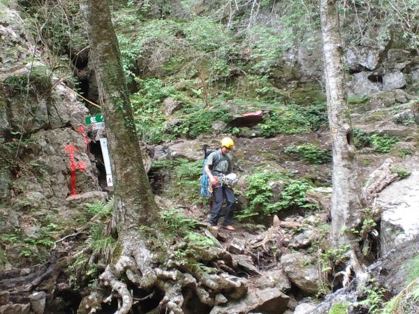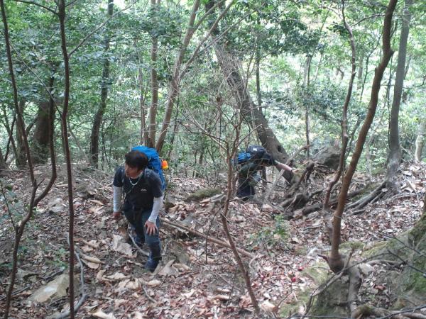 取り付きまでの藪こきは、足場も悪く、なかなかパンチの利いた行程です