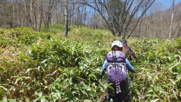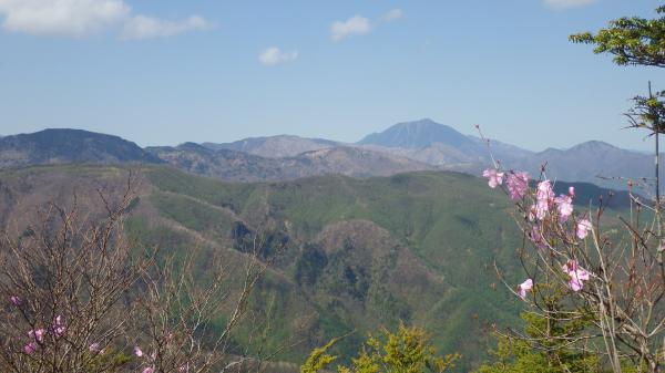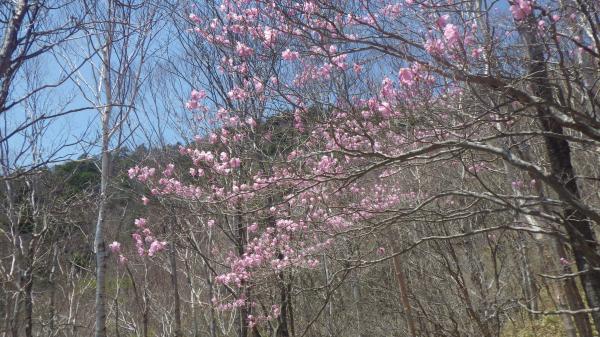 沢の遡行を終えて藪漕ぎをしていると今度は頭上にヤシオが満開!隣の尾根にもキレイなピンク色がちらほら。