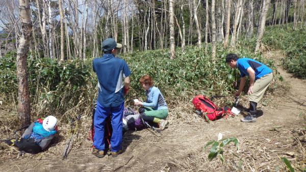 - 9:15折場橋-(50分)-10:05伐採跡-(165分)-12:50_1655mコル(装備変更)-(20分)-13:30避難小屋(昼食)-(20分)-14:30小丸山山頂-(48分)-15:18賽ノ河原-(42分)-16:00折場登山口